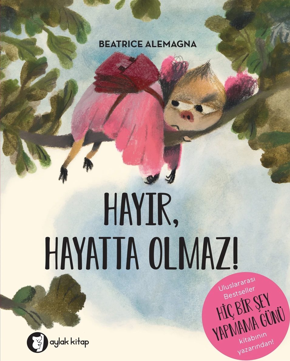 Beatrice Alemagna’nın yazıp resimlediği, Rüzgar Rumi’nin dilimize çevirdiği, Aylak Kitap tarafından yayımlanan Hayır, Hayatta Olmaz! okula gitmek istemeyen Lila’nın “hayır”ının arkasına saklanan ayrılık korkusunu aşmasını ve yeni bir dünyaya adım atmasını konu ediniyor.